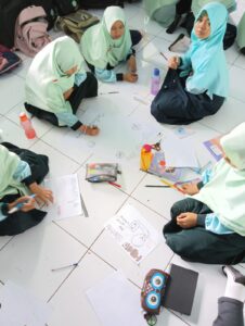 Projek kelas 7 yaitu melanjutkan membuat poster jejak karbon untuk persiapan kampanye.