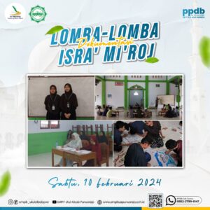Sabtu, 10 Februari 2024 SMPIT Ulul Albab Purworejo memiliki Agenda Perlombaan di Hari Serangkaian Peringatan Isra Mi’raj. Peserta lomba ialah siswa siswi SMPIT Ulul Albab Purworejo.
