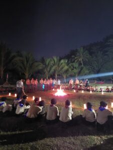 Jum’at, 19 Juli 2024 pada pukul 01.00 WIB memulai kegiatan dengan Asro Biummati Lailan (Jerit Malam), Penjelajah Alam dan Outbound, Lomba Memasak, Materi 2 bertema “Tali Temali” yang disampaikan oleh Kak Asri Arti Lestari, dan Kak Sutarto, S.Pd., Materi 3 bertema “Pionering (Pembuatan Peralatan Bermain Peran Sejarah, Perang Jendral Sudirman) yang disampaikan oleh Kak Dwi Kasworo, S.Pd.I., dan Kak Miftahudin, S.Pd., Taujih 2 bertema “Pemuda yang Dicintai Allah dan RasulNya untuk Generasi Emas Indonesia yang disampaikan oleh Perwakilan SDIT Wates dan kegiatan terakhir yang di tunggu-tunggu adalah Api Unggun, Alih Golongan dan Pensi.