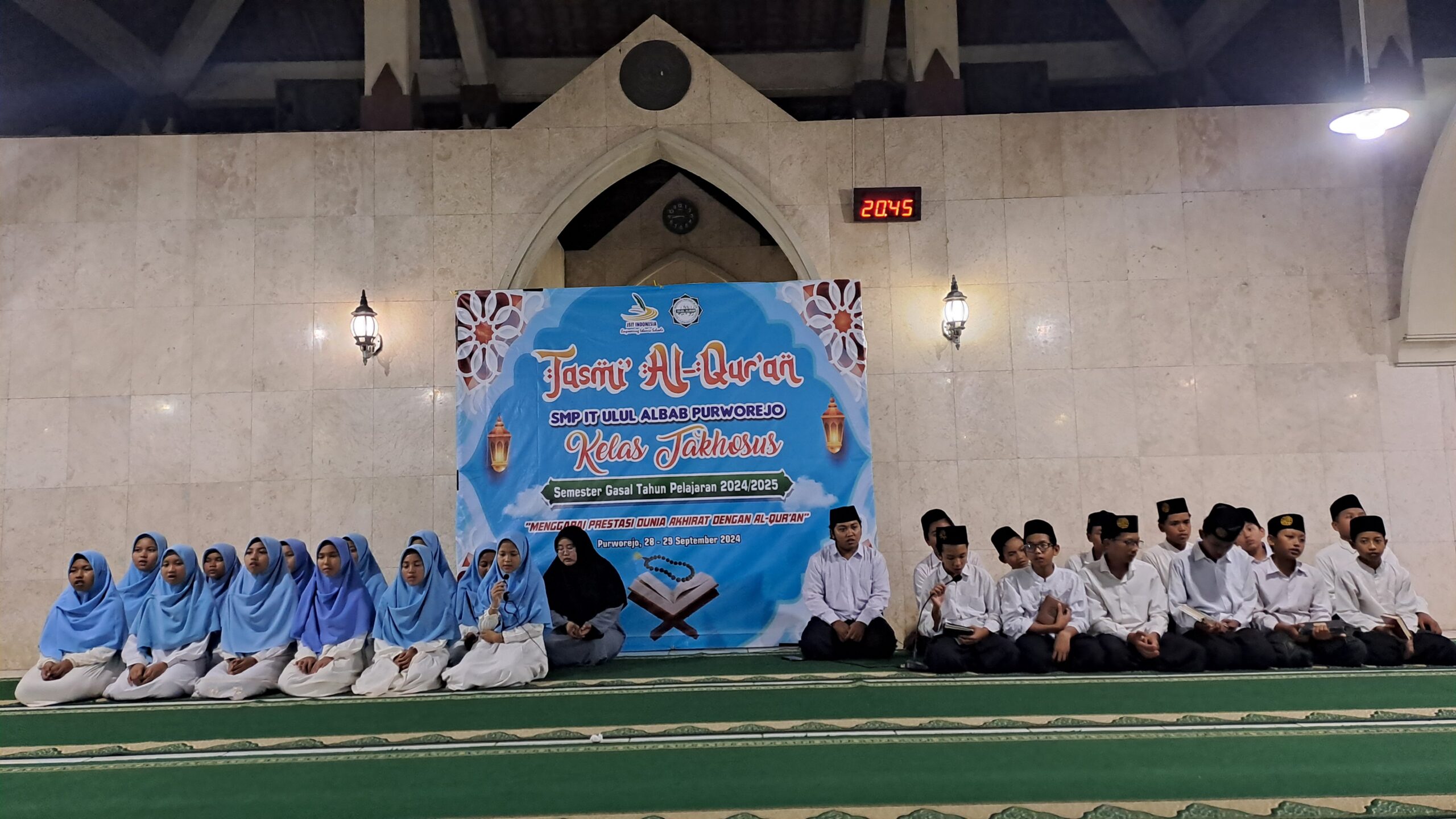 Pada tanggal 28-29 September 2024 SMP IT Ulul Albab Purworejo memiliki Agenda Tasmi’ Al-Qur’an Kelas Takhosus Tahun Pelajaran 2024/2025.