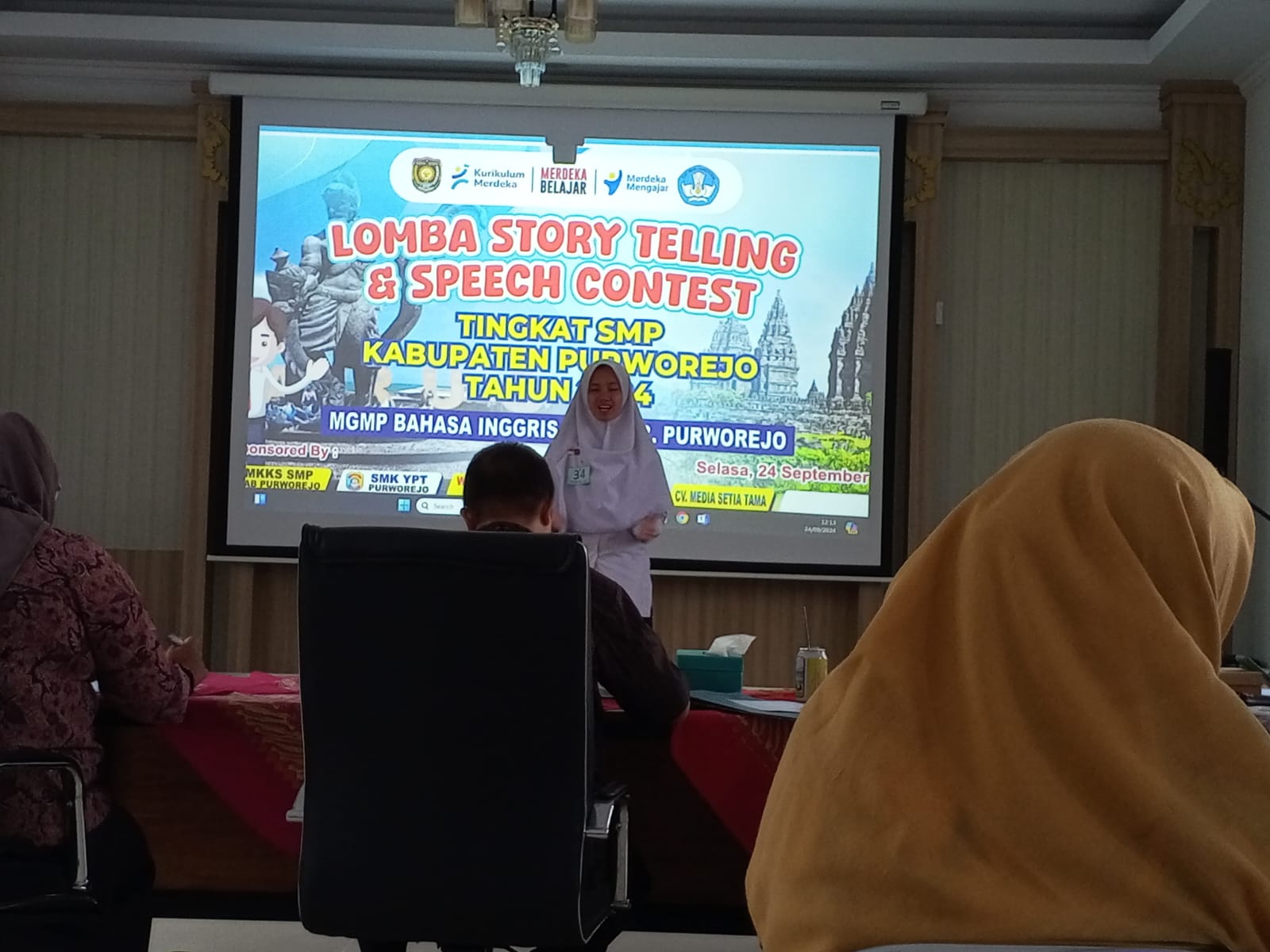 Perlombaan Story Telling ini yang diadakan oleh MGMP Bahasa Inggri Kabupaten Purworejo, dengan total keseluruhan peserta terdapat 44 peserta dari seluruh SMP Negri maupun Swasta Kabupaten Purworejo.